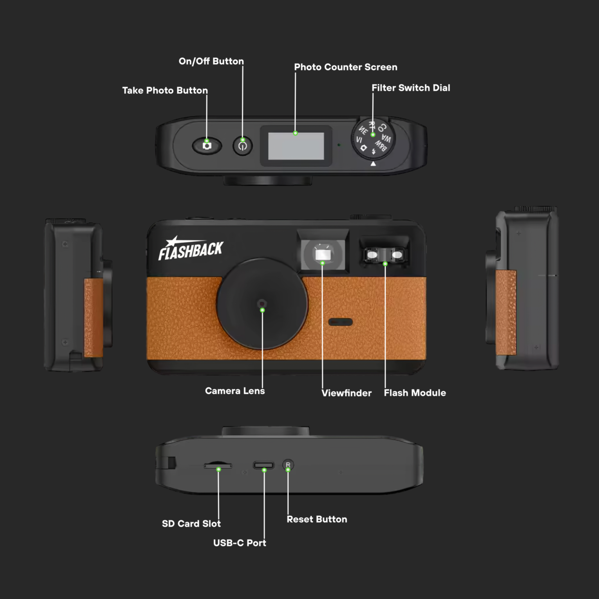 Flashback gives you the nostalgic feel of a disposable camera - but with the convenience of digital. No film, no development, no waiting. Just shoot, connect, and transfer your photos instantly.